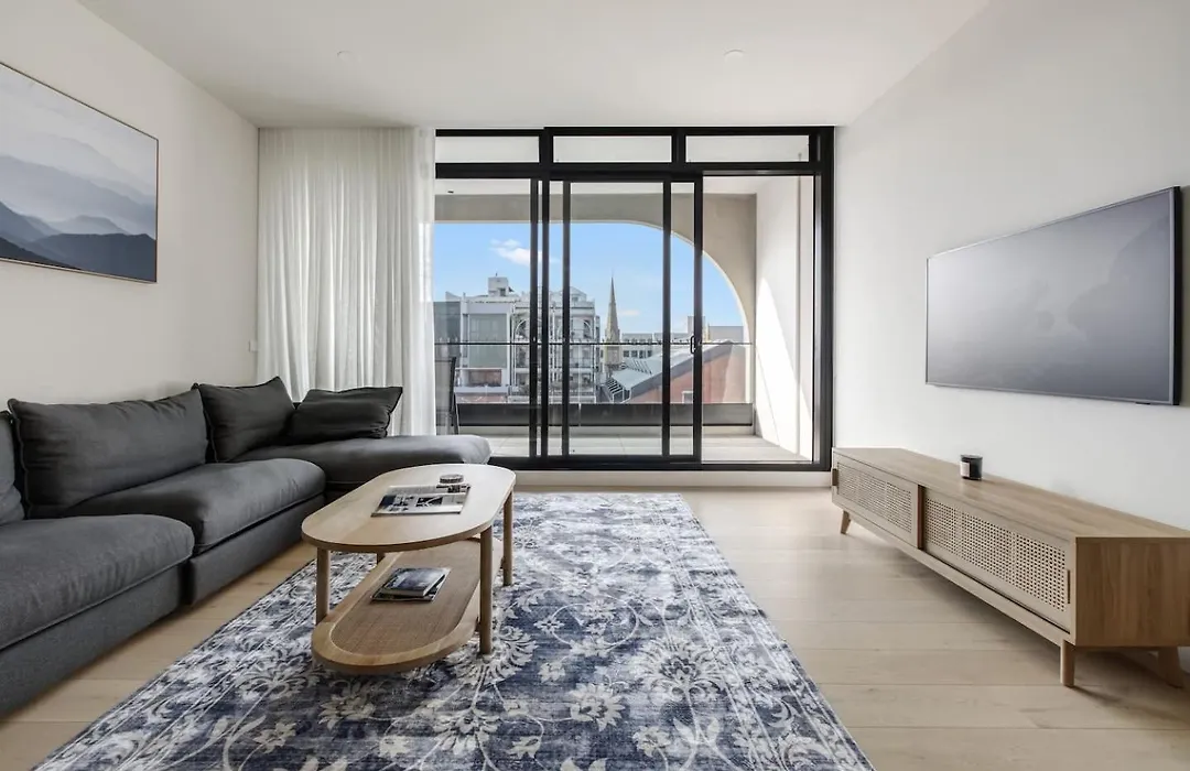 A balcony and a seating area are all fitted with a TV and Wi-Fi, as well as an iron with ironing board and climate control, ensuring guests' comfort. 81 m² The Archer Brunswick - A Refined Inner-City Getaway is also furnished with a sofa set and a writing table. Featuring a separate toilet and a shower, a bathroom provides a dryer and towels.